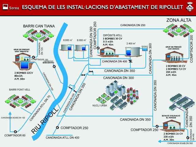 A Ripollet hi ha 63,5 km de canonades i 16.272 abonats (el 90% són llars).