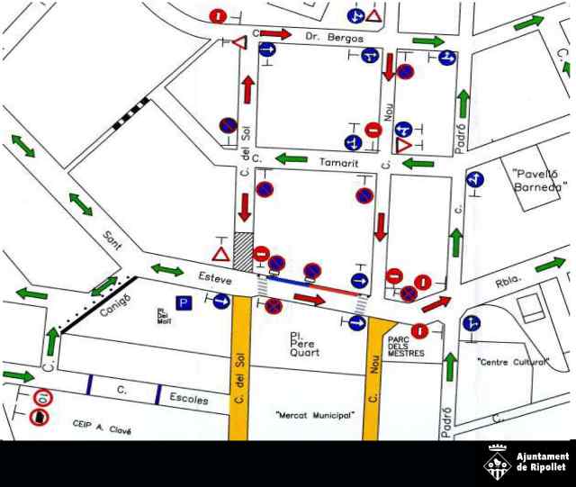A partir de l'obertura al trànsit de la rambla de Sant Esteve s'ha canviat el sentit de circulació d'alguns trams de carrer de direcció única, per tal de facilitar el trànsit rodat, evitant excessos de velocitat i l'aglomeració de vehicles a determinats espais i franges horàries. Aquestes modificacions estaven contemplades a l'Estudi de Mobilitat i aparcament de Ripollet, que l'Ajuntament ve aplicant esglaonadament. També s'ha aprofitat per elevar els passos de vianants.