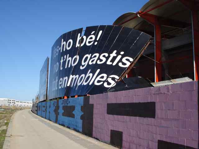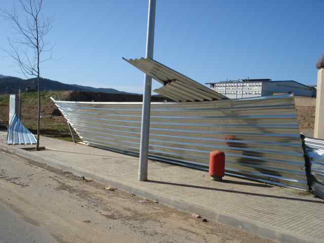 FOTO1: Les tanques publicitàries del camp de futbol es van tombar degut al fort vent.