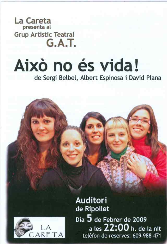 L'espectacle teatral Això no és vida es tornarà a representar a Ripollet el proper 5 de febrer. En aquesta ocasió, s'encarregarà de dur a escena aquesta obra original de les T de Teatre el grup Artístic Teatral de Cerdanyola.