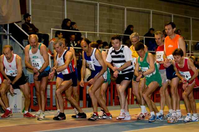 Foto: Ildefonso Teruel, abans de la sortida, al 14è Campionat de Catalunya de Veterans a Pista Coberta.