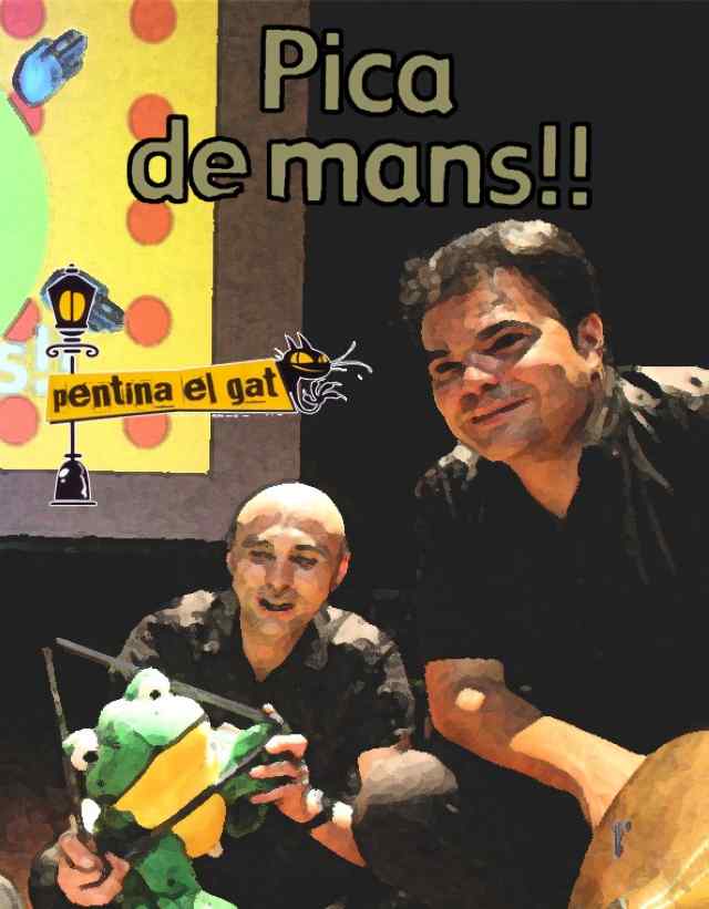 Pica de mans és un espectacle musical, amb contes i música, on el ritme i els instruments de percussió són els protagonistes dalt de l'escenari. Amb el suport de 7 contes, la Cia Pentina el gat presenta totes les característiques del ritme i els instruments de percussió que ajuden a la seva construcció.
