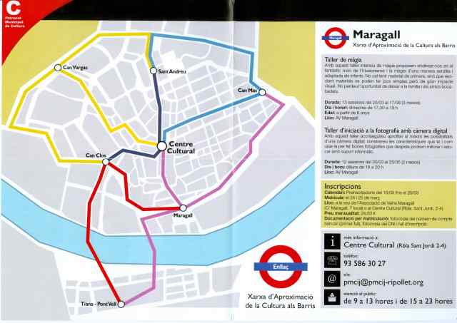 El passat dimarts 10 de març, el regidor de Cultura, Ferran Tornel, i membres de l'Associació de Veins del Barri de Maragall van presentar el programa Enllaç, que neix amb l'objectiu d'establir una xarxa que aproximi la cultura als barris de la vila. Amb aquesta voluntat, el Patronat Municipal de Cultura fa una proposta per tal que l'administració, les entitats del barri i els veïns i veïnes de Ripollet realitzin plegats un treball de cohesió social i desenvolupament cultural. Enllaç s'iniciarà amb dos tallers a l'Associació de Veïns del barri de Maragall, un sobre màgia i l'altre sobre fotografia digital.