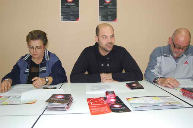 FOTO3: El regidor de Cultura, Ferran Tornel, i membres de la junta de l'Associació de Veïns del barri de Maragall, durant la presentació de l'acte.
