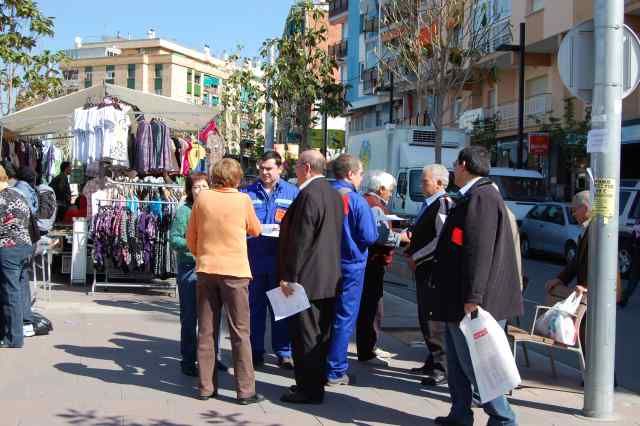 Foto: Els treballadors d'Aismalibar van repartir informació el passat dimecres, 29 d'abril, al mercat setmanal de Ripollet.