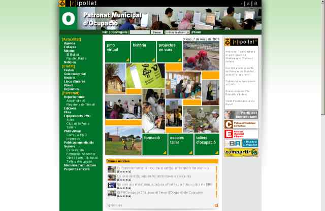 El Patronat Municipal d'Ocupació estrena web aquest dilluns 11 de maig. L'adreça de la pàgina és pmo.ripollet.cat i ha estat desenvolupada amb el suport del departament d'Informàtica i el Patronat de Comunicació. La pàgina es crea amb l'objectiu de facilitar informació als ripolletencs sobre les iniciatives ocupacionals en marxa i el serveis que ofereix el PMO per tal ajudar als aturats a trobar feina.