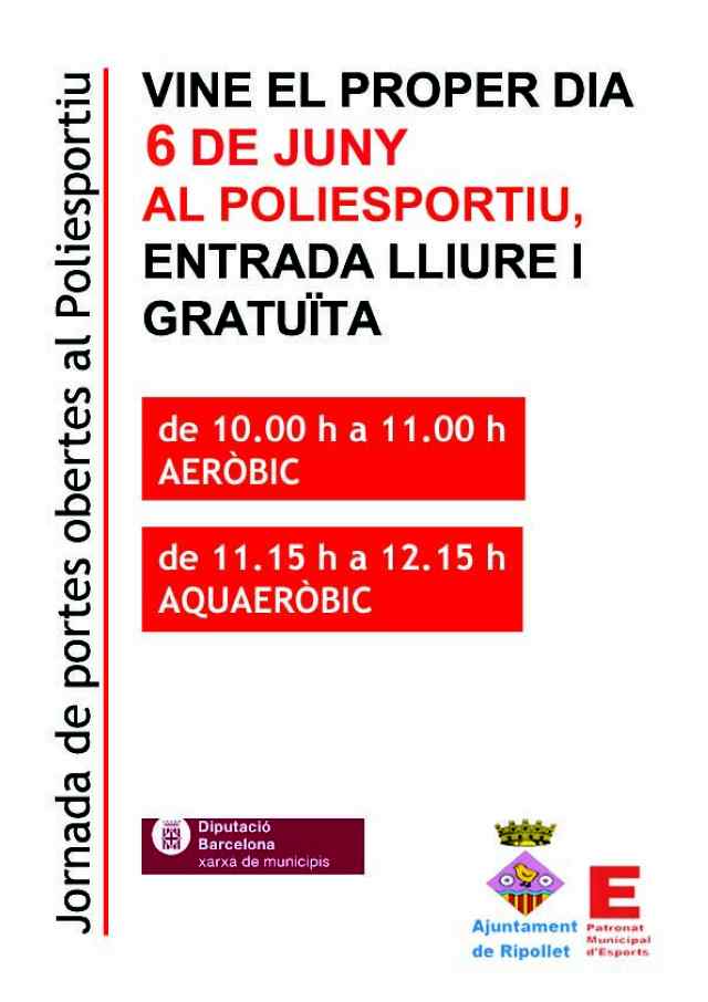 El proper 6 de juny les piscines descobertes del Poliesportiu Municipal inauguren la temporada d'estiu. Serà amb una jornada de portes obertes organitzada pel Patronat d'Esports i la Diputació de Barcelona, que comptarà amb activitats dirigides gratuïtes.