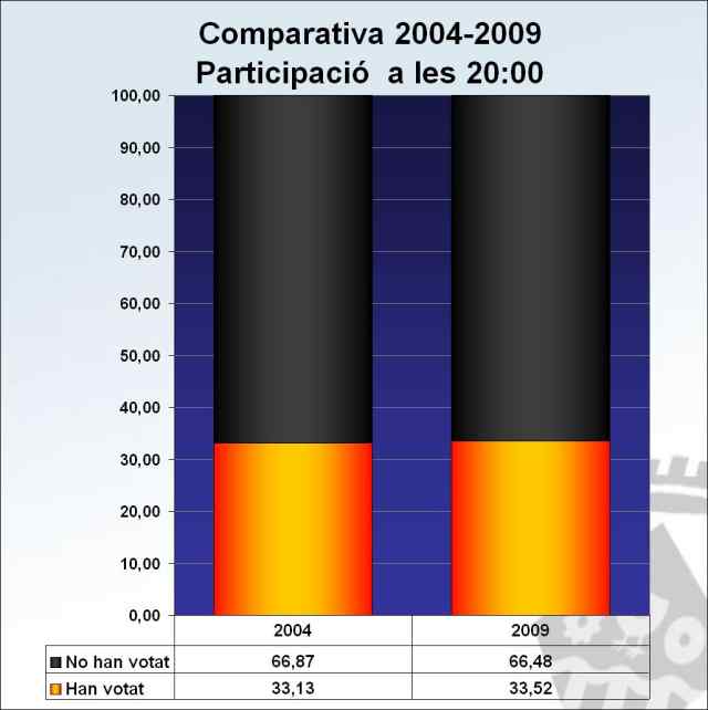 Les europees repeteixen a Ripollet com les eleccions menys participatives. Igual que fa 5 anys, només un de cada tres ripolletencs va acudir als comicis per escollir el Parlament Europeu, celebrats aquest 7 de juny. En aquesta ocasió, la participació va ser del 33,52% (8.780 votants), unes dècimes més que a les anteriors. No obstant, inferior a la mitjana catalana i espanyola, amb 4 i 12 punts, respectivament.