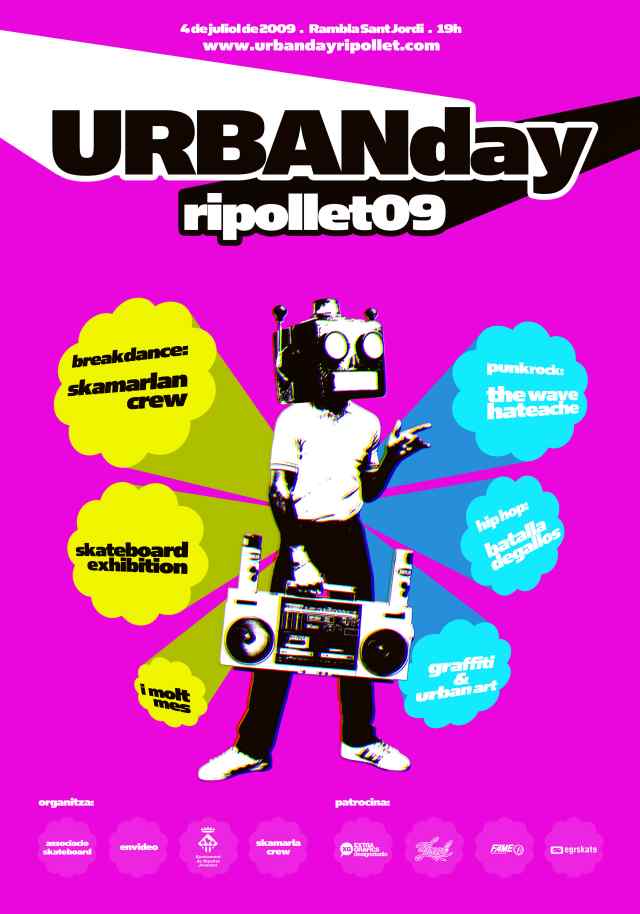 Fruit de la demanda d'un bon nombre de joves de Ripollet i, en especial, de l'entitat EnVídeo Ripollet, la Regidoria de Joventut ha organitzat l'Urban Day Ripollet 09, que tindrà lloc el proper 4 de juliol, a la rambla de Sant Jordi. L'activitat està recolzada per l'entitat de breakdance Skamarlà Crew i per l'Associació Skateboard.