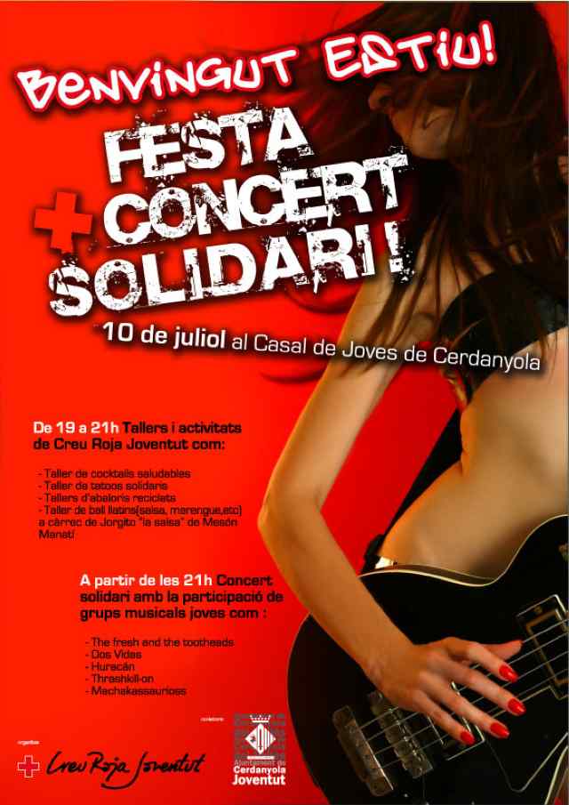 Creu Roja Joventut a Cerdanyola, Ripollet i Montcada ha organitzat per al divendres 10 de juliol una festa solidària al Casal de Joves de Cerdanyola. Els voluntaris i voluntàries de Creu Roja Joventut, amb el suport de l'Ajuntament de Cerdanyola, organitzen el concert per tal de promoure les activitats de Creu Roja Joventut i els hàbits d'oci saludable i solidari. Aquesta festa està adreçada a la gent jove, especialment als menors de 18 anys.