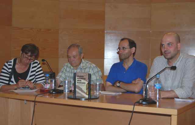 Foto: (d'esquerra a dreta) Laura Roca, de la CRAC; Evarist Manzado, de Ripollet Debats; Jordi Casanova, l'autor, i Ferran Tornel, regidor de Cultural.