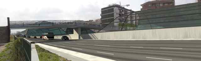 L'actual passarel·la seria substituïda per una de nova construcció de 5 metres d'amplada i 26 de llargària, amb una barana de 2 metres d'alçada, també de ferro i metacrilat. A més, amb el rebaix de 2 metres del carril de l'autopista, l'accés des de l'avinguda de la Creu Roja ja no seria tan pronunciat.