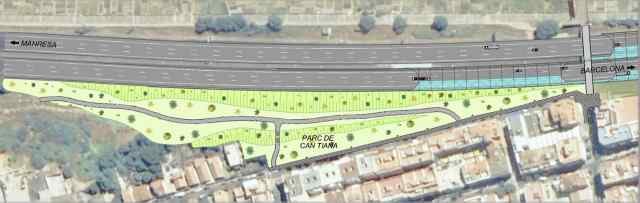 Aprofitant el rebaix del carril es refaria el parc, perquè actuï també de pantalla del soroll. A més, es preveu dividir-lo en dos terrasses, unides mitjançant una escala. Gràcies a aquesta distribució, s'aconsegueix reduir de forma important els pendents del parc, que no superaria el 8% d'inclinació, la qual cosa permetria l'accés al parc a tot tipus d'usuaris.