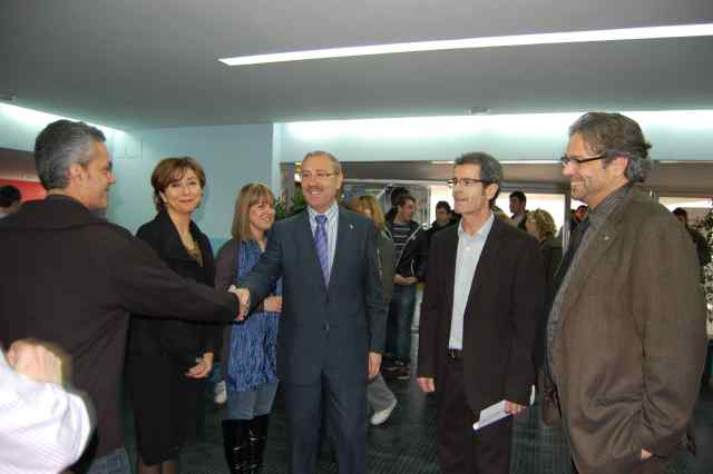 Posteriorment, tota la comitiva es va dirigir a l'IES Palau Ausit on el president Benach va ser rebut per la regidora d'Educació, Maria del Mar Viera, el director de l'institut José Alfaro i tota la directiva del centre. Amb ells va mantenir una reunió i posteriorment es va dirigir a l'aula on s'havia d'oferir la conferència.