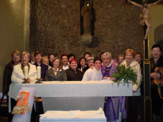 El passat diumenge, 28 de febrer, les alumnes i la professora del taller de puntaires del Centre Cultural van assistir a la missa de les 11 i van fer el lliurament de treballs fets amb puntes de coixí al mossèn Antonio Rubio. Es tracta de 4 peces corporals i 3 per al rentamans, per a les celebracions litúrgiques de la Missa.
