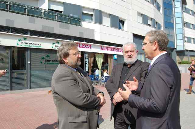 FOTO2: Els alcaldes de Ripollet i Montcada i Reixac, Juan Parralejo i César Arrizabalaga, conversen amb el director general de Transport Terrestre, Manel Villalante.