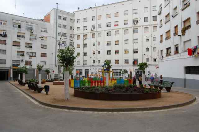 L'actuació ha consistit en anivellar la zona verda, instal·lar un ampli espai de jocs infantils, nou arbrat i uns grans parterres florals. A més, s'han posat bancs i mobiliari urbà reciclat, que ha estat restaurat per la pròpia escola taller. En aquests treballs han participat una desena de persones en atur, que han après treballant els oficis de paleta, fusteria, jardineria, ferreria i instal·lacions.