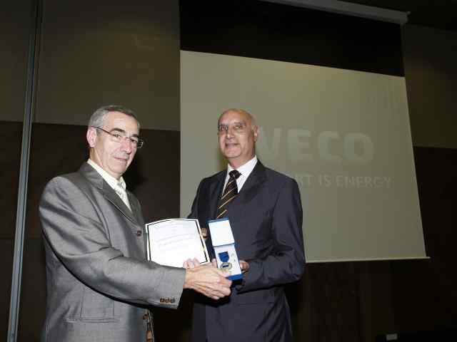 Foto 1: El conductor Pedro Flores, rebent la medalla de la mà del Director General de la Federació.