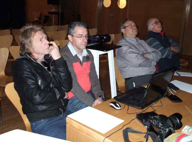 Foto 1: el fotògraf Raul Villalba (esquerra); el vocal de concursos, Benjamín Gamarra; el President de Foto-Film Calella, Quim Sitja i el fotògraf Argentí, Hugo Morbelli.
