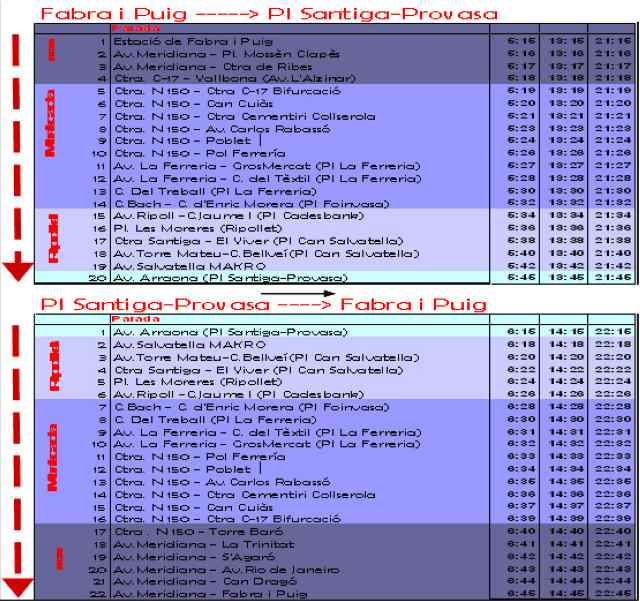 Les noves expedicions se sumaran a l'oferta de serveis d'autobús existent entre Barcelona i Ripollet, que inclou la línia 620, amb sortides cada 30 minuts entre les 4.45 i les 21.45 hores, i la línia 622 amb sortides cada 20 minuts aproximadament, entre les 6 i les 21 hores, ambdues amb sortida des de Fabra i Puig.