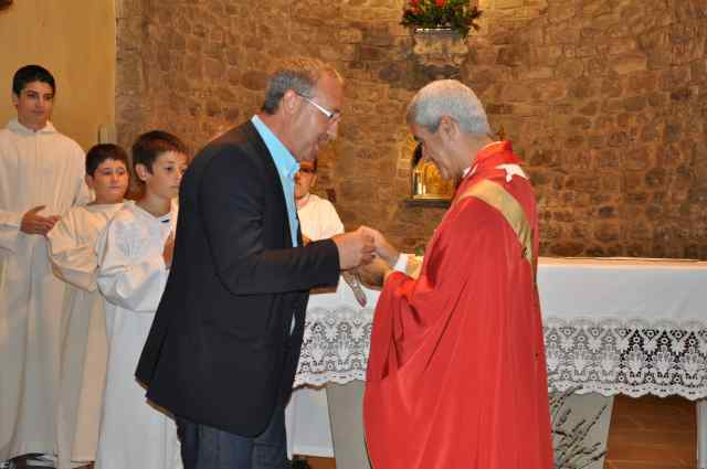 El mossèn ha estat dos anys a càrrec de la parròquia i s'ha guanyat l'estimació dels feligresos. És per això, que la comunitat ha decidit concedir-li de manera extraordinària la Creu de Sant Esteve. Per la seva part, l'alcalde el va obsequiar amb l'insígnia de l'Ajuntament i diverses entitats li van mostrar el seu afecte amb diferents records.