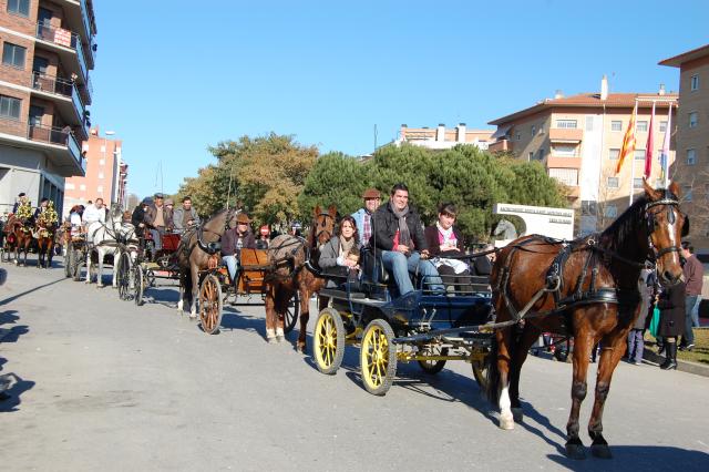 La celebració va començar ben d'hora, a les 7 del matí amb la diana de traginers i una hora més tard l'esmorzar al recinte firal. Com marca la tradició, durant el matí es va fer la missa solemne, la benedicció dels animals, el repartiment de coca i mistela i finalment, els Tres Tombs. La passada va estar encapçalada pel banderer, Rafael Pérez, acompanyat pels seus fills Paula i Marc, seguits del carruatge de la Comissió amb la figura del Sant Antoni Abat. La música la van tornar a posar les bandes de "La Popular Sansense" i "El triangle de Sants".