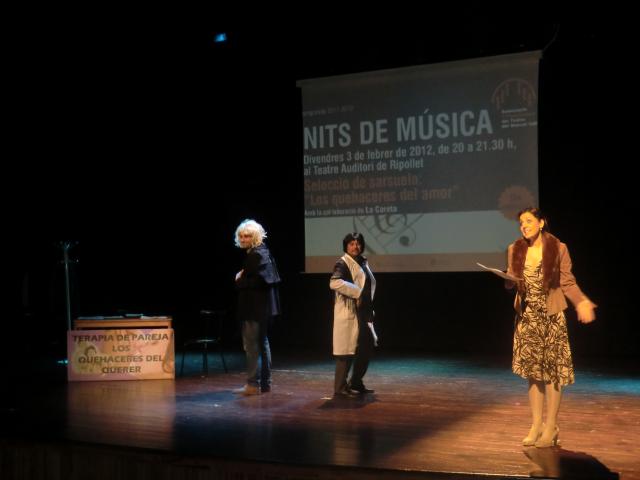 El passat divendres, el Teatre Auditori va acollir una sessió de les Nits de música, molt especial, dedicada a la sarsuela. Sota el títol Los quehaceres del amor i amb la col·laboració de La Careta Teatre, l'Associació d'Espectadors va oferir un espectacle divertit i amè sobre el món de la sarsuela.