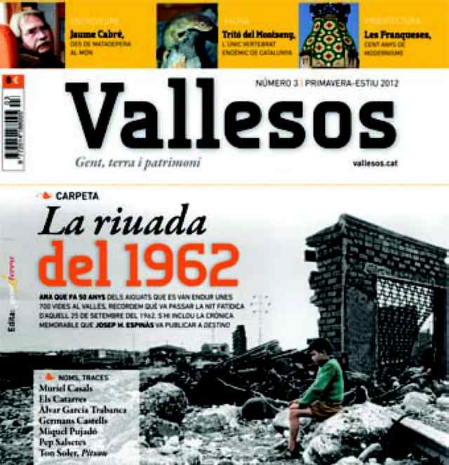 El tercer número de la revista llibre semestral Vallesos Gent, terra i patrimoni ja ha sortit al carrer. Aquesta edició, de primavera-estiu del 2012, compta amb un dossier especial sobre les tràgiques riuades del 1962. Així, les pàgines centrals es dediquen als fets d'aquella nit del 25 de setembre, d'ara fa 50 anys, que van causar 700 víctimes mortals al vallès. Un ampli grup de periodistes, historiadors, especialistes d'altres àmbits i testimonis personals relaten i analitzen els fets i les seves vivències.