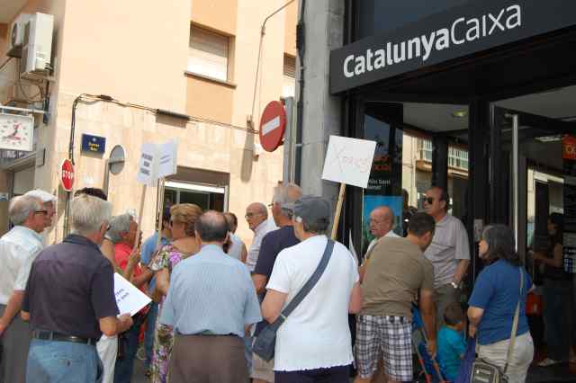El grup d'afectats per les participacions preferents ha realitzat, aquest dimecres, 11 de juliol, un recorregut per diferents entitats bancàries del municipi per tal de lliurar als directors de les oficines el seu manifest. El text reclama el retorn dels diners dels petits estalviadors i l'establiment de sistemes més ètics de venda de productes bancaris. Fins ara, el manifest ja ha aconseguit prop de 400 signatures de suport.