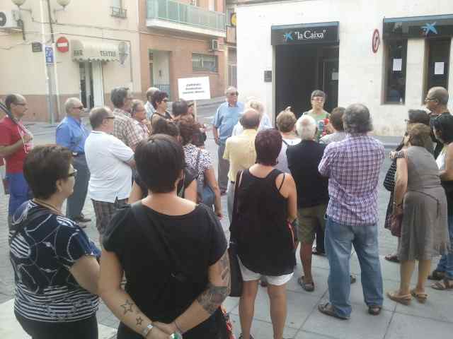 Aquest dijous, 6 de setembre, a les 18.30 de la tarda, un grup de persones de la Plataforma d'Afectats per les Participacions Preferents es van reunir a la plaça 11 de setembre, davant de l'oficina de La Caixa. L'entitat continua així amb una sèrie de reivindicacions per tal d'aconseguir que les entitats bancàries tornin els estalvis als afectats. Així, el proper dijous es tornaran a trobar davant de la fiscalia, conjuntament amb d'altres afectats per fer més pressió.
