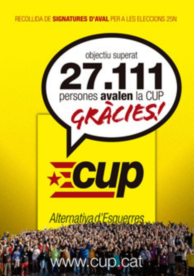 La candidatura al Parlament de Catalunya de les CUP-Alternativa d'Esquerres posarà en marxa, també a Ripollet, la campanya electoral per les properes eleccions del 25 de novembre del 2012. De la mà del recent creat Grup de suport de Ripollet a la CUP, aquest dijous 8 de novembre a les 21.30 hores tindrà lloc a El Local, carrer Monturiol 32, la trobada de totes les persones i col·lectius locals per engegar la campanya.