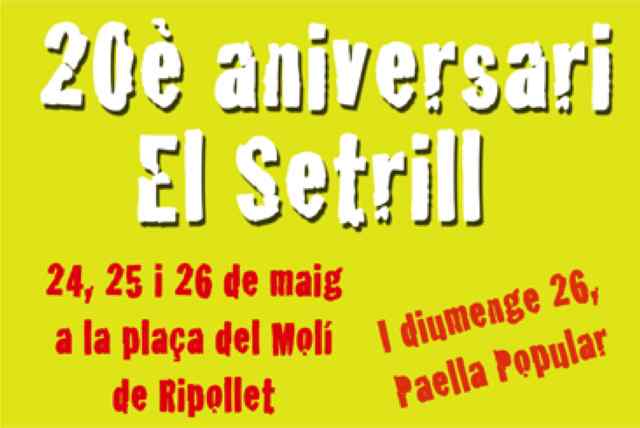 El cap de setmana del 24 al 26 de maig es presenta farcit d'activitats i propostes per a grans i petits. El divendres al vespre es donarà el tret de sortida la festa pel 20è aniversari d'El Setrill, amb degustació de plats realitzats pels socis de l'entitat gastronòmica, que s'allargarà tot el cap de setmana. Dissabte, cap a les 19 hores, se sumaran a la celebració les actuacions de grups musicals locals, monòlegs i un conjunt de blues i diumenge el matí la festa culinària estarà amenitzada per una mostra d'Els Miserables, una cantada d'havaneres amb l'Espingari i quatre paelles per a un total de 800 persones. Ripollet Ràdio posarà banda sonora a la festa, punxant en diferents moments.