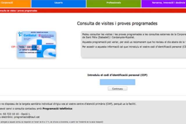 Els usuaris de la Corporació Sanitària Parc Taulí ja poden consultar les visites i proves que tinguin programades en els diferents centres i serveis, a través de la seu electrònica del web institucional www.tauli.cat. Introduint el Codi d'Identificació Personal (CIP), l'aplicatiu facilita tota l'activitat programada del pacient, així com les indicacions sobre la preparació prèvia en els casos en què sigui necessari.