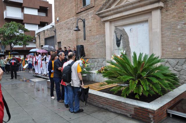 El passat dimecres, la pluja va acompanyar als ripolletencs i ripolletenques durant els actes que l'Ajuntament de Ripollet va organitzar per commemorar la Diada Nacional de Catalunya. Una vintena d'entitats culturals, socials, esportives i polítiques a més de diferents membres del consistori van participar de l'ofrena floral al monument de Rafael Casanova. A l'acte també va actuar la Societat Coral El Vallès, que va interpretar diferents peces.