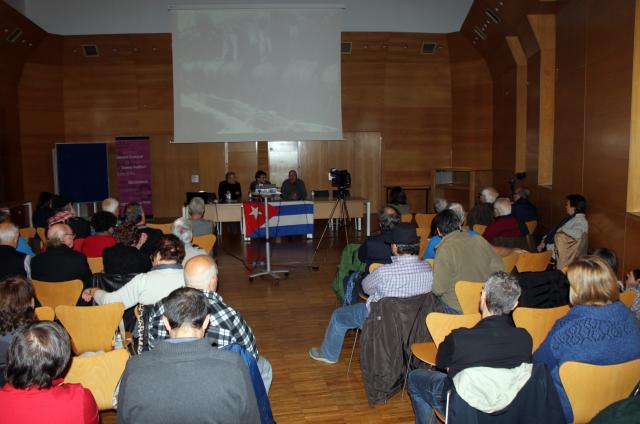 Abans del concert, la Sala d'Actes del Centre Cultural va acollir una xerrada sobre la revolució cubana, a càrrec de Xavier Esteve, director d'Escola de Música i Dansa de Mollet.