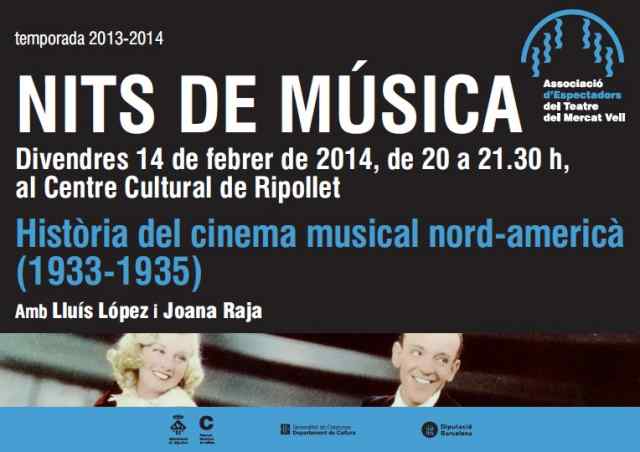 Aquest divendres, l'Associació d'Espectadors tornarà a dedicar la sessió de les Nits de Música als musicals americans. De la mà de Joana Raja i Lluís López, es farà un repàs dels musicals americans més destacats entre els anys 1933 i 1935. La sessió començarà a les vuit del vespre, al Centre Cultural i s'allargarà fins a 2/4 de deu de la nit.