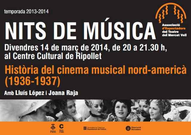 Serà divendres, 14 de març, a les vuit del vespre. Coms empre la cita al Centre Cultural, amb Joana Raja i Lluís López que continuen fent un repàs de la història del cinema clàssic nordamericà, especialment centrar en el gènere dels musicals.