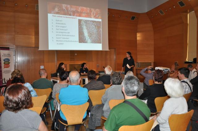 La xerrada ha anat a càrrec Pablo Martínez, Plataforma per l'Auditori Ciutadana del Deute i Verònica Miró de la comissió promotora del Multireferèndum.