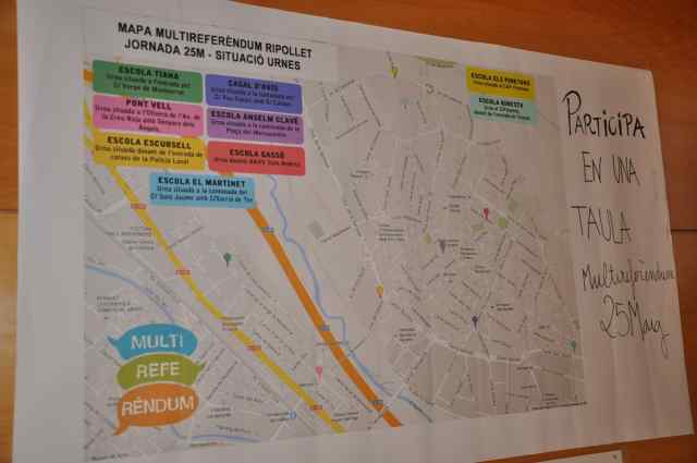 A Ripollet el Multireferèndum ha tingut una forta important campanya informativa amb diferents actes i xerrades sobre el moviment i les preguntes que promou. En cas de poder-se celebrar, té previst instal·lar 7 urnes repartides pels següents punts de la població:
