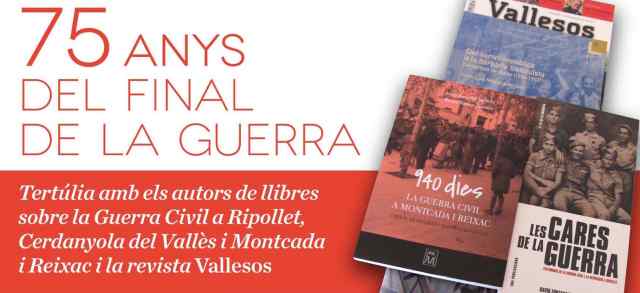 David Fontanals, l'autor de Les cares de la guerra. Testimonis de la Guerra Civil i la repressió a Ripollet, serà l'encarregat de portar a terme la xerrada. Ho farà juntament a Josep Lluís Negreira, autor del llibre Del somni republicà a la barbàrie franquista. Cerdanyola del Vallès. També hi seràn presents els dos escriptors de 940 dies. La Guerra Civil a Montcada, Ricard Ramos i Josep Bacardit, i l'actual director de la revista Vallesos, que ha dedicat la seva última publicació a l'aniversari.