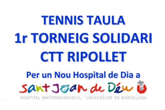 El proper dissabte 20 de setembre el Pavelló Municipal Joan Creus acollirà des de les 9 del matí un torneig solidari organitzat pel CTT Ripollet en benefici del nou Hospital de Dia de Sant Joan de Déu. Les inscripcions, que es poden realitzar en aquest link, tenen un preu de 6 euros que funcionarà com a donatiu.