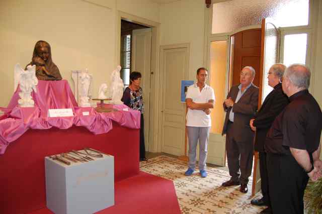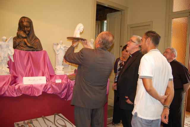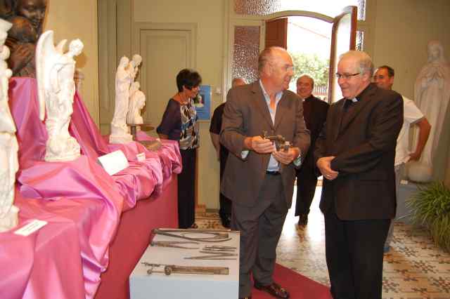 Josep Àngel Saiz Meneses, que va venir amb el seu secretari personal, Mn. Manuel Coronado, també va visitar l'exposició acompanyat pel rector de la Parròquia de Ripollet, Mn. Josep Gassó, i va rebre totes les explicacions sobre l'obra i vida de l'escultor Juventeny de la mà del president de Cultura i Tradició, Pere Padró, i del propietari de les obres, el cerdanyolenc Joan Torras.