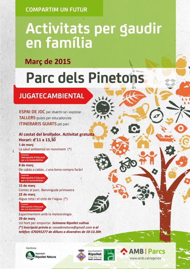 El proper diumenge, 1 de març de 2015, començaran les activitats d'un nou espai de dinamització d'activitats d'educació per la sostenibilitat al parc dels Pinetons: la Jugatecambiental. Els projectes de Jugatecambiental tenen com a objectiu la promoció dels valors del parc i oferir un espai de joc i experimentació en família. Aquest projecte, organitzat per l'Ajuntament de Ripollet i l'Àrea Metropolitana de Barcelona, serà gestionat pels educadors i educadores de l'Associació Ripollet Natura, entitat que gestiona la Casa Natura.