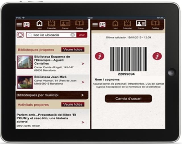 A més d'aquestes prestacions, l'app també ofereix la mobilització del carnet, és a dir, incorpora el carnet de biblioteca a l'app i, per tant, en descarregar-la ja no cal dur el carnet "físic" per a tràmits com el préstec o autopréstec de documents o gaudir dels avantatges culturals del carnet. El carnet de biblioteca es mostra a la pantalla del mòbil i el lector de codi de barres el llegeix directament. L'altra novetat de la versió actualitzada és que inclou un accés directe al Catàleg Aladí.