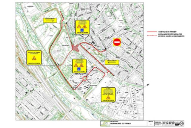 Donada la ubicació i la forma d'execució de la construcció, serà necessari tallar el trànsit del carrer de Balmes, des del carrer del Molí d'en Ginestar, direcció carretera de Santiga, que també estarà tallada fins la rotonda amb el carrer del Molí d'en Rata, quedant desviat tot el trànsit pel vial del riu Ripoll.