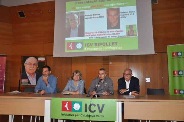 Iniciativa per Catalunya va presentar el passat dimarts, 28 d'abril, a Ramon Martos com a cap de llista dels ecosocialistes de Ripollet. L'obertura de l'acte va anar a càrrec de l'actual regidor d'Iniciativa, Valentí Nieto, que passa a ser número 2.