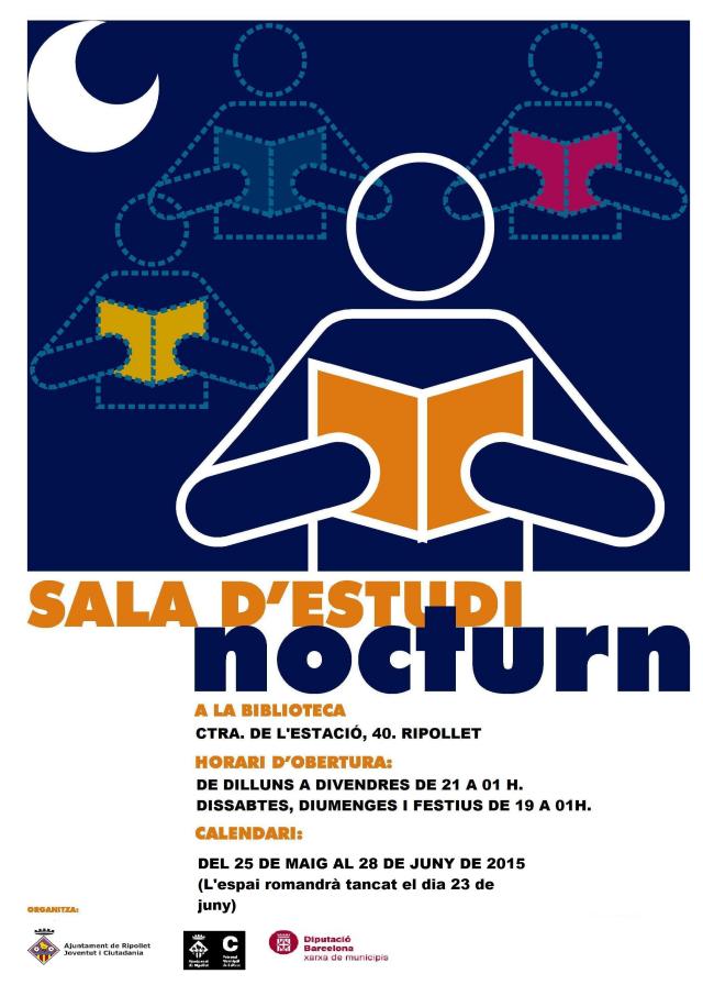 La Sala d'Estudi Nocturn és una iniciativa de la regidoria de Joventut i Ciutadania, inclosa dins del programa d'actuacions del Pla Local de Joventut de Ripollet 2012-2015, i compta també amb el suport del Patronat Municipal de Cultura i la Policia Local.