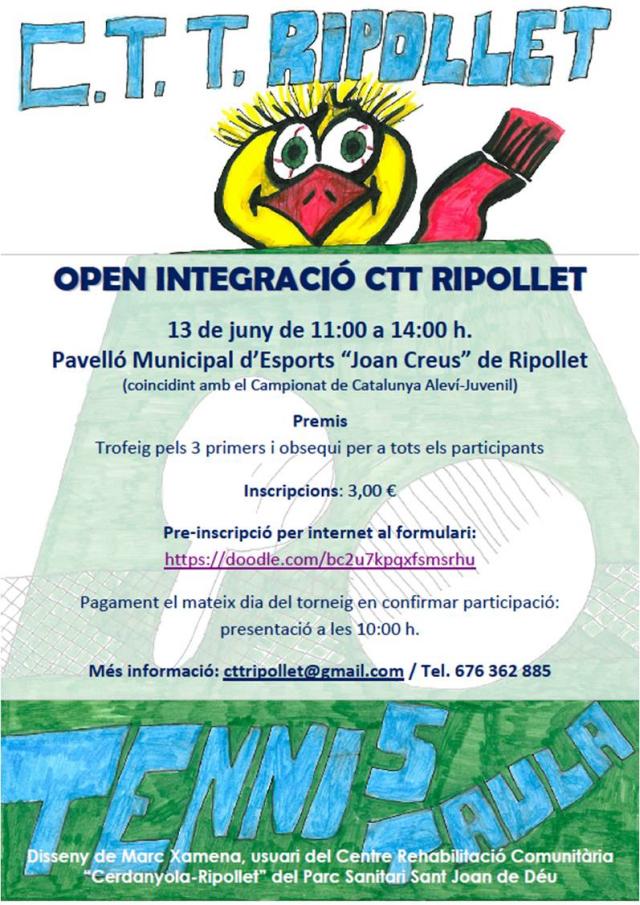 Durant el dissabte, també tindrà lloc l'Open Integració de Tennis Taula adaptat. És el primer any que se celebra aquest Open, que està adreçat a persones amb dificultats físiques i psíquiques. La jornada esportiva es completarà dissabte amb una xerrada divulgativa. A les 17 hores, es durà a terme la xerrada 'Educar i entrenar per empoderar l'esportista', a càrrec de Marta Eroles, psicòloga experta en coaching del rendiment esportiu.