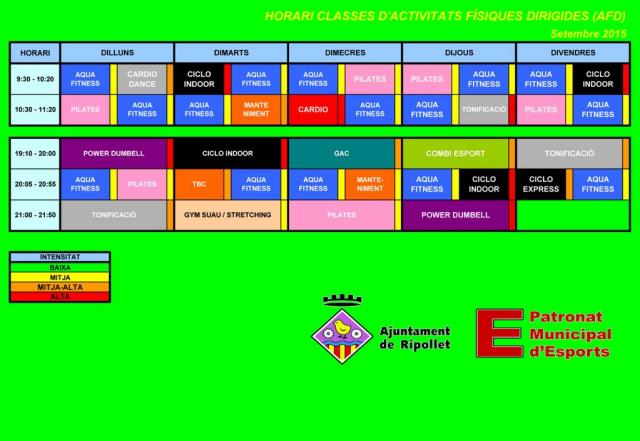Horaris de les activitats físiques dirigides del PAME per setembre