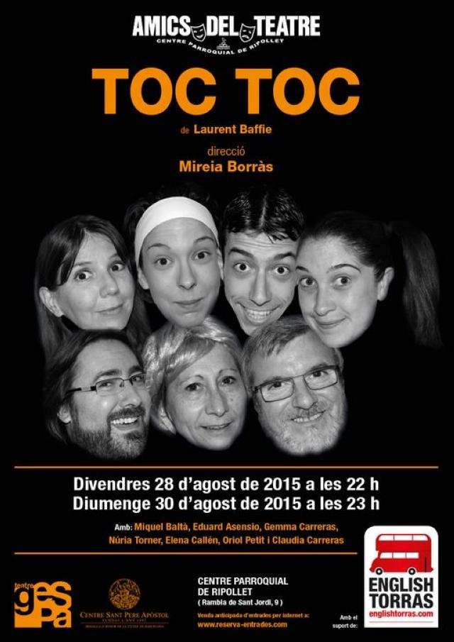 Aquesta Festa Major, Amics del Teatre ha convidat el grup de teatre Gespa, de Barcelona, que representarà al Centre Parroquial l'obra 'Toc Toc', de Laurent Baffie, sota la direcció de Mireia Borràs. L'espectacle es podrà veure el 28 d'agost, a les 22 hores, i el dia 30, a les 23 hores, al Centre Parroquial. El preu de l'entrada és de 10 euros.